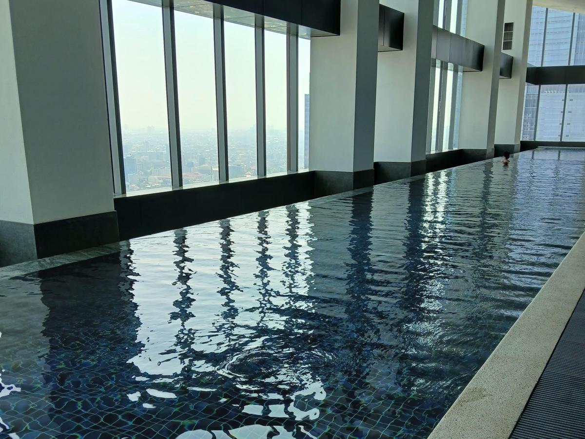 高層階のインドアプールは最高の眺め